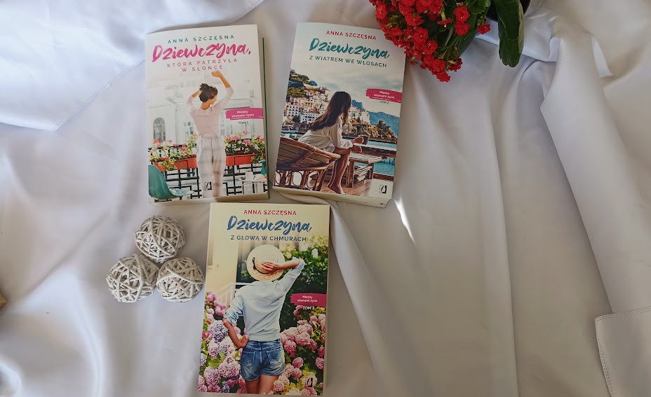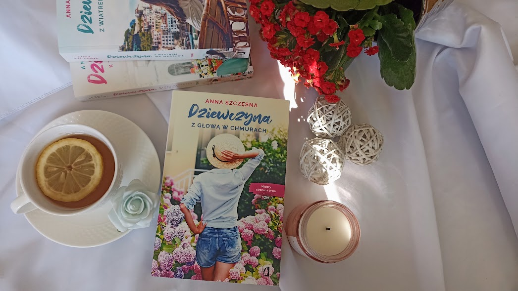 „Dziewczyna z głową w chmurach” to trzeci tom cyklu „Między stronami życia”. Zamyka ona tym samym niestety sagę toruńską. Po „Dziewczynie, która patrzyła w słońce” i „Dziewczynie z wiatrem we włosach” z niecierpliwością wypatrywałam 3 tomu. Cykl ten ma ciekawą konstrukcję. Z jednej strony można powiedzieć, że każdy tom to historia jednej z przyjaciółek, z drugiej strony jednak losy bohaterów poznanych wcześniej toczą się dalej w kolejnych tomach. Zdecydowanie polecam więc czytanie cyklu po kolei. Lektura będzie wtedy zdecydowanie pełniejsza i bogatsza.