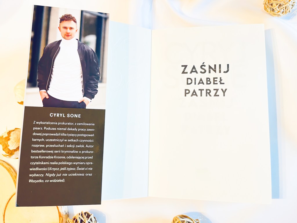 Cyryl Sone zaskoczył mnie swoim pojawieniem się na polskim rynku wydawniczym. Wielu Autorów wykonywało, to częściej, różny zawód zanim się całkowicie oddało pisaniu. Nie ma jednak wśród nich, a przynajmniej polskich, aktywnie zawodowo prokuratora, to chyba jest rzadkością nawet w skali światowej🤔. A zawód wykonuje właśnie Autor, którego Wydawca; Wydawnictwo Znak dostarczył na polski rynek wydawniczy premierę z 14 sierpnia br. zatytułowaną „Zaśnij, diabeł patrzy”, która zapoczątkowała nową serię pt. „Prawo Dunli”. Cyryl Sone jest autorem czterech książek o Konradzie Kroonie, o których przeczytacie na moim blogu; „Krzycz, jeśli żyjesz”, „Świat ci nie wybaczy”, „Nigdy już nie uciekniesz” oraz „Wszystko co widziałeś”. Seria szturmem podbiła rynek czytelniczy niespełna w dwa lata od premiery pierwszego tomu. Niby coś mowa jest o kiepskiej autopromocji – jakoś nie natrafiłam na zapowiedź spotkania autorskiego ze Stonem, podobnie jak w przypadku głównego bohatera z debiutującej książki „Zaśnij, diabeł patrzy” – ale chyba Cyrylowi Sone autopromocja jest niepotrzebna, jeśli o jego książkach w różnych kręgach rozmawiają czytelnicy często, jak pada pytanie o coś ciekawego, co pojawiło się ostatnio na rynku😉. Jak sam zresztą Autor w posłowiu napisał